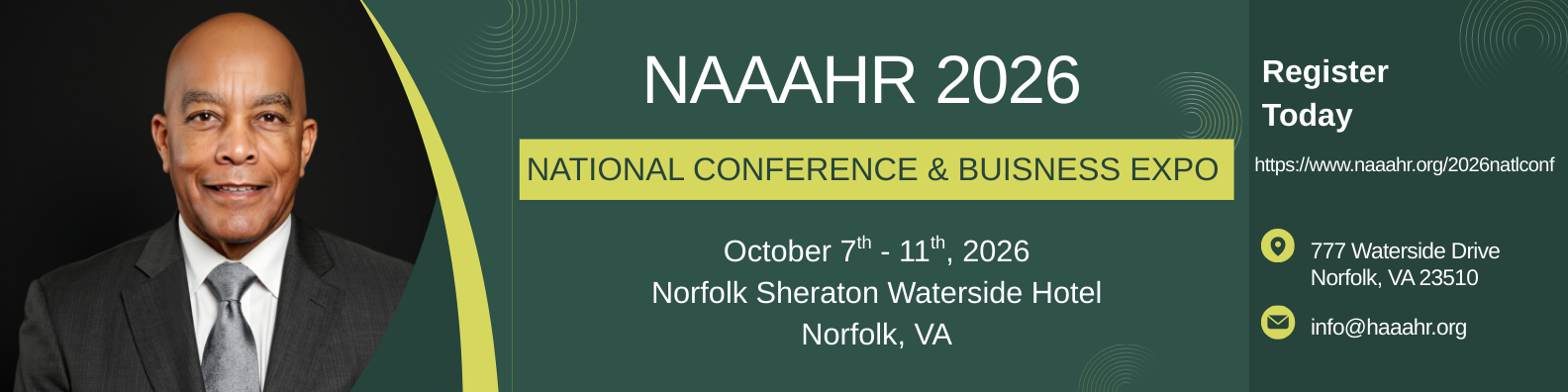 The 2026 NAAAHR National Conference "Leading Today - Building Tomorrow" is by far one of the most notable events we will host that crosses every working class. We are dedicated to pushing leaders to think future forward.